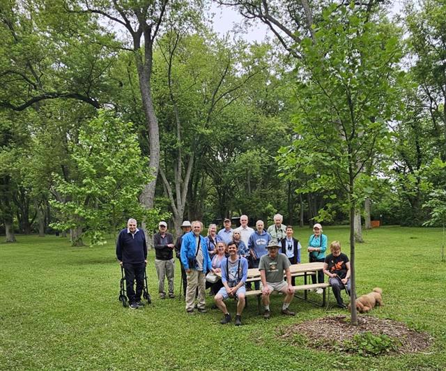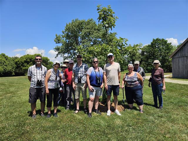 A dedication of a planted Swamp White Oak tree to Jim McAllister took place at Hillman Marsh on Sunday, July 13, 2025. A few ECFNC members and family members were present. Many fond memories were spoken about Jim. His wife, Claire reminisced that Jim started the Essex County Field Naturalists' Club in their living room, with about 10 members present.