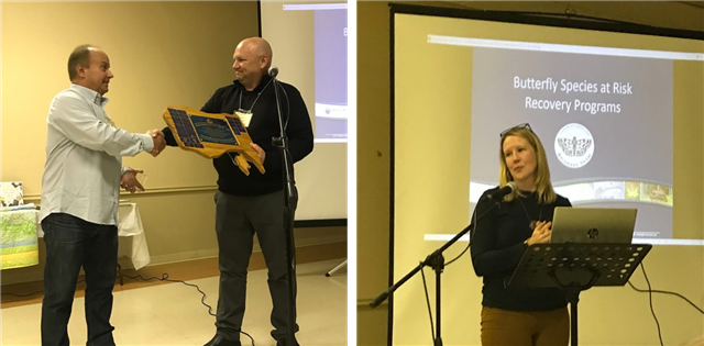 - Biologist Jessica Linton gave an interesting talk on her work restoring habitat for Species at Risk butterflies, including the Mottled Duskywing and Frosted Elfin Butterfly (right) |