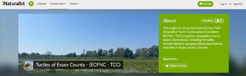 The Essex County Field Naturalists’ Turtle Conservation Committee has launched a community-science based project on iNaturalist titled “Turtles of Essex County - (ECFNC - TCC)